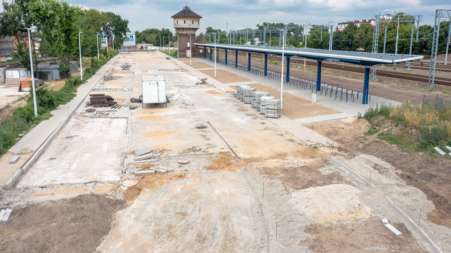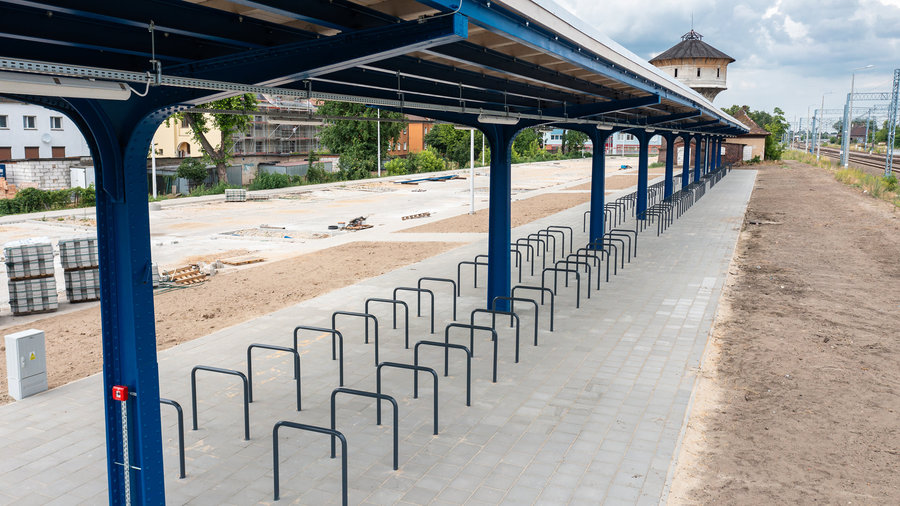 Parking na trzysta rowerów i sto samochodów miał być gotowy w czerwcu. Przedłużały się jednak prace przy montażu odrestaurowanej wiaty peronowej z 1905 roku, przez co wstrzymano budowę parkingu samochodowego. Wiata jest już gotowa, a pod nią stojaki na rowery. Torpol może teraz dokończyć budowę parkingu samochodowego.