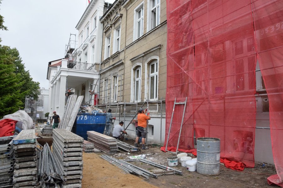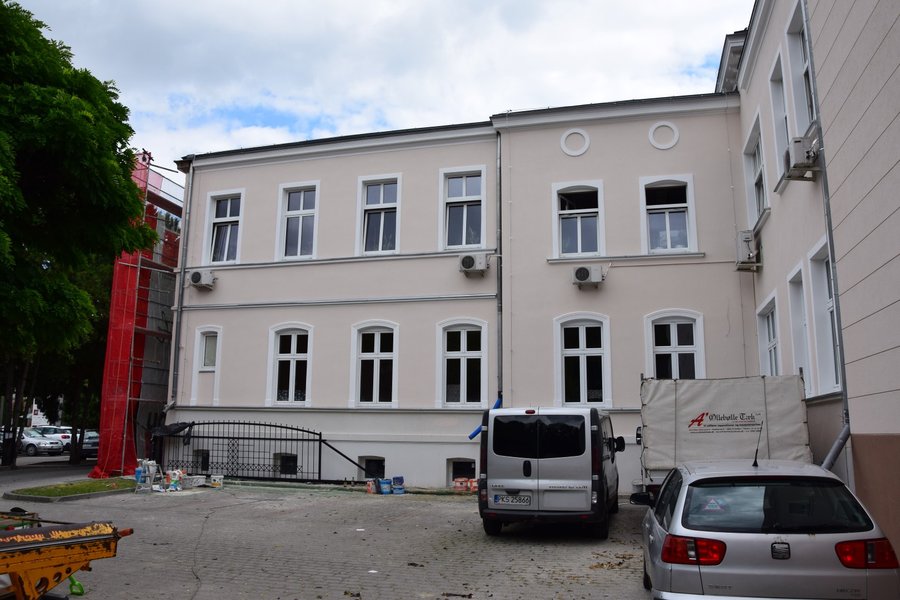 Rozebrano rusztowania na części frontowej ściany remontowanego budynku kościańskiego starostwa i magistratu.