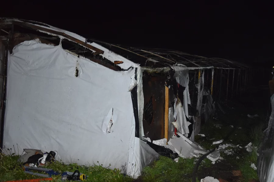 Podczas gaszenia tuneli strażacy bronili także sąsiadujące z nimi domy mieszkalne. Ogień doszczętnie strawił 9 tuneli foliowych o wymiarach 6 x 25 metrów. Wypełnione były głównie meblami i różnymi elementami wyposażenia mieszkań.