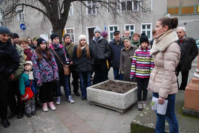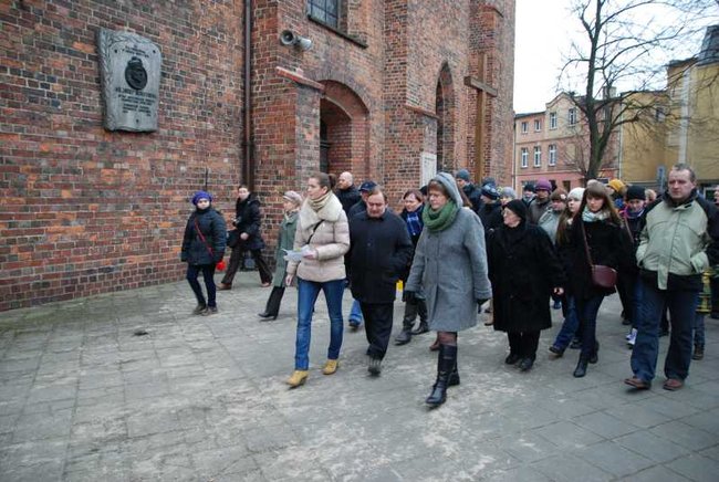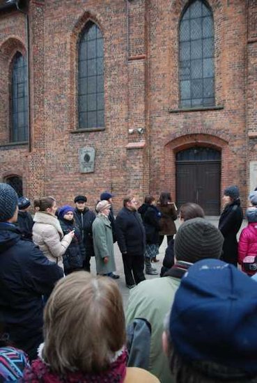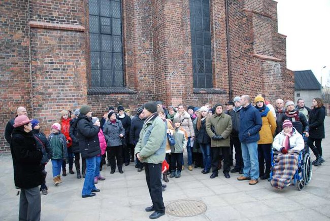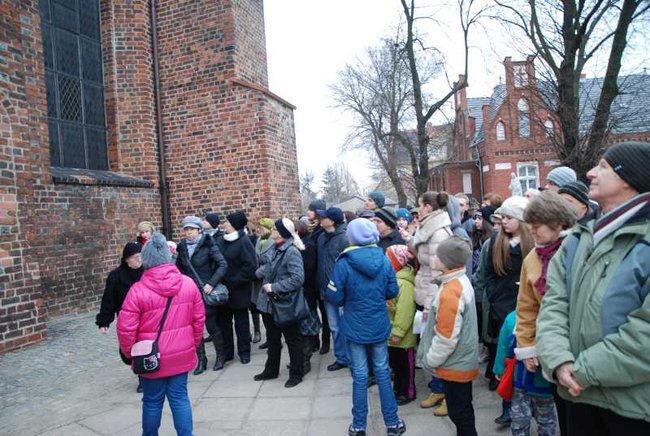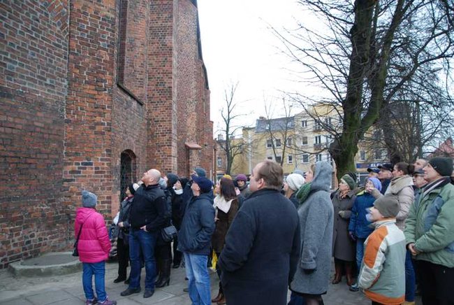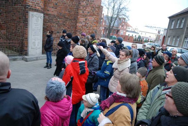 Po wyjściu z fary zwiedzający udali się na spacer po starej części Kościana, podczas którego można było dowiedzieć się jak wyglądało miasto na przełomie XV/XVI w.