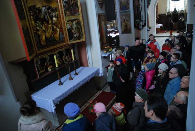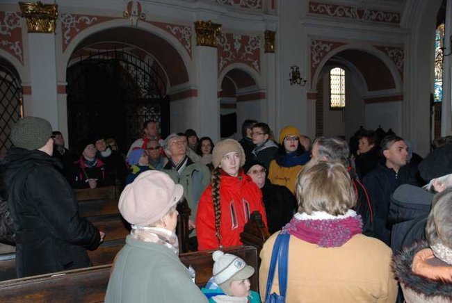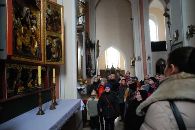 Po farze i wokół niej grupę oprowadzała Natalia Biernacka, studentka V roku historii sztuki na poznańskim UAM-ie, a tajniki obrazu ,,Wizja św. Augustyna’’ zdradził Dariusz Kram, dyrektor kościańskiego muzeum. Wycieczka trwała ponad godzinę. Z uwagą zwiedzający przyglądali się kościołowi zbudowanemu w XIII w. i jego zabytkom, słuchając historii jego powstania, informacji o dobudowanych w XV w. nawach bocznych i sześciu kaplicach, rozbudowie fary po wielkim pożarze miasta w 1503 r., a także wieży, która zawaliła się w 1547 r. i pomimo odbudowania runęła w efekcie huraganu. Ciekawość zwiedzających wzbudził późnogotycki tryptyk pochodzący z warsztatu mistrza z Gościszowic i odnowiony późnorenesansowy ołtarz główny, pochodzący z 1620 r.
