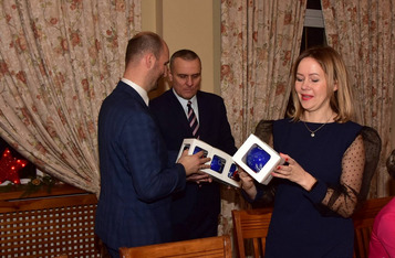 W spotkaniu uczestniczył burmistrz Konrad Malicki oraz przewodniczący miejskiej rady Maciej Głochowiak. Uczestnicy spotkania przełamali się opłatkiem, a burmistrz podarował chórzystom ręcznie malowane bombki z wizerunkiem czempińskiego kościoła. (zk)