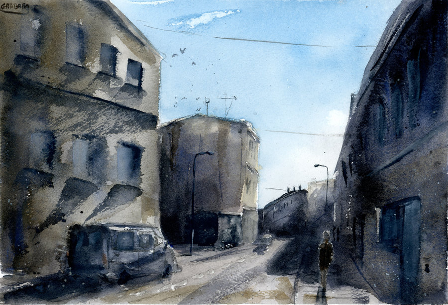 Wirtualna Galeria koscian.net to cykl, w ramach którego będziemy prezentować dzieła twórców związanych z Ziemią Kościańską. Pierwszym gościem galerii jest Krzysiek Grabara. Trzy lata temu, w koscian.net i Gazecie Kościańskiej ukazała się obszerna rozmowa z Krzyśkiem o jego artystycznym przebudzeniu i twórczości fotograficznej. W ubiegłym roku sięgnął po nowe środki wyrazu. Nie porzucając fotografii zajął się malarstwem. Prezentujemy sześć prac Grabary poświęconych rodzinnemu Kościanowi. O autorze Krzysiek Grabara urodził się w 1985 roku w Kościanie. W 2016 roku zajął się fotografią, studiował teorię obrazu. Fotografował głównie na ulicy szukając siebie i ćwicząc spojrzenie w fotografii ulicznej co przyniosło mu nagrody i wyróżnienia w konkursach Paris Street Photo Awards, Warsaw photography Awards, Artystycznej podróży Ergo Hestii, Mokotów teraz, Wielkopolska Press Photo, Festiwal Interphoto w Białymstoku, wygrał dwa konkursy MGfoto z rzędu. Jego prace publikowane były za oceanem w Street Photographers Notebook oraz na łamach magazynu Eyeshot, a także w różnych polskich czasopismach takich jak Charaktery, czy na okładce w Głos Mordoru. Prowadzi też warsztaty fotograficzne z uważności w fotografii jak i jej podstaw. W 2019 roku zajął się malarstwem w różnych technikach jak akwarela, akryl, węgiel, sucha pastel, czy malowanie tuszem. Jego prace nawiązują do stylów ekspresjonizmu, ale też symbolizmu i intymizmu.