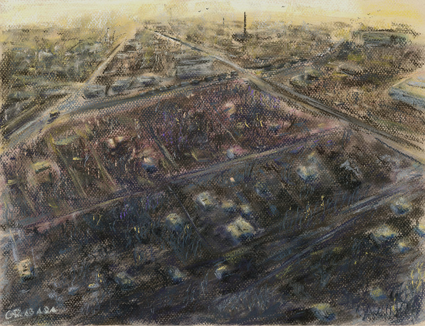 Z lotu ptaka. Pocztówka z Kościana (42x31 cm pastel)