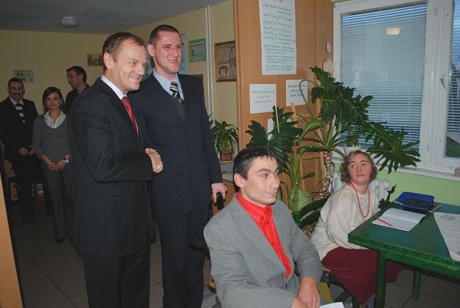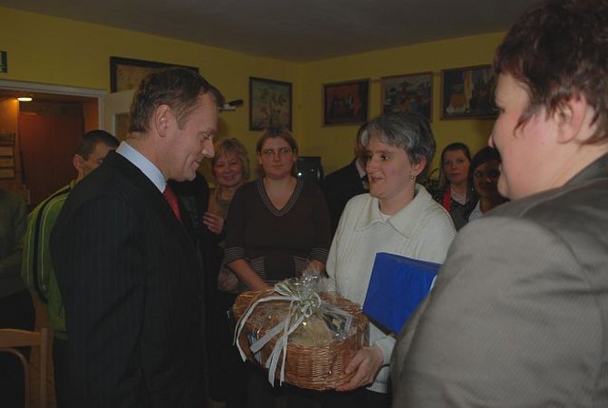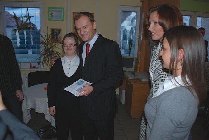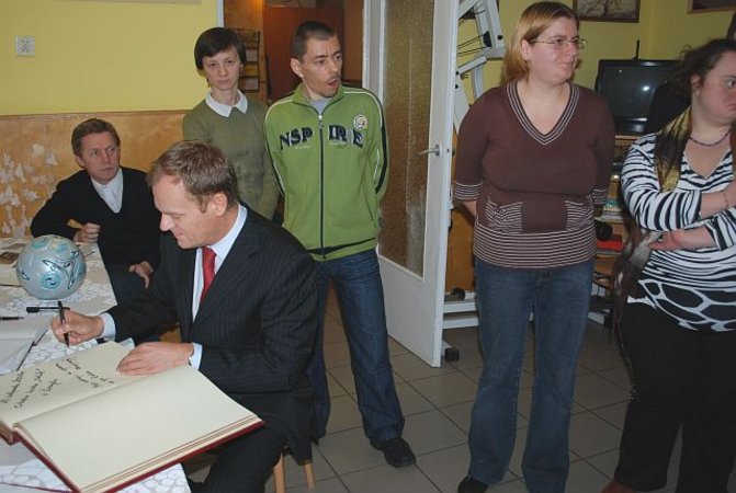 Wizyta szefa rządu w WTZ-ach pierwotnie nie została wpisana jako oficjalny punkt programu pobytu Donalda Tuska na Ziemi Kościańskiej. Ostatecznie jednak znalazła się na liście potwierdzonej przez kancelarię premiera. Wizytę poprzedziły skrupulatne oględziny pomieszczeń, wszystkich zakamarków, a nawet piwnic przez Biuro Ochrony Rządu. Każdy, kto wchodził do budynku musiał też przejść kontrolę. Premierowi towarzyszyli parlamentarzyści z Platformy Obywatelskiej oraz kilkuosobowa grupa dziennikarzy mediów lokalnych i ogólnopolskich. Zgodnie z planem premier miał spędzić w Warsztatach 50 minut. Ostatecznie w gościnnych progach był prawie dwa razy dłużej. W piątek, 28 listopada, przed blokiem nr 48, w którym mieści się siedziba WTZ-ów kłębił się gęstniejący z minuty na minutę tłum. Każdy chciał choć przez chwilę zobaczyć na własne oczy premiera, choćby przez szybę.Przypomnijmy, że Warsztaty Terapii Zajęciowej w Kościanie powstały w 1995 r. Od samego początku kierownikiem placówki była Renata Smelkowska. Od lutego br., gdy Warsztaty działają przy Stowarzyszeniu na Rzecz Dzieci i Młodzieży Niepełnosprawnej Światło Nadziei, kierownicze stanowisko objęła Anna Hryniewicz -Szulc. Głównym celem działania WTZ jest realizacja zadań z zakresu rehabilitacji społecznej i zawodowej zmierzająca do ogólnego rozwoju: poprawy zaradności osobistej, sprawności psychofizycznej oraz przygotowania do samodzielnego, niezależnego życia. W zajęciach uczestniczy 30 osób z Kościana i okolic.