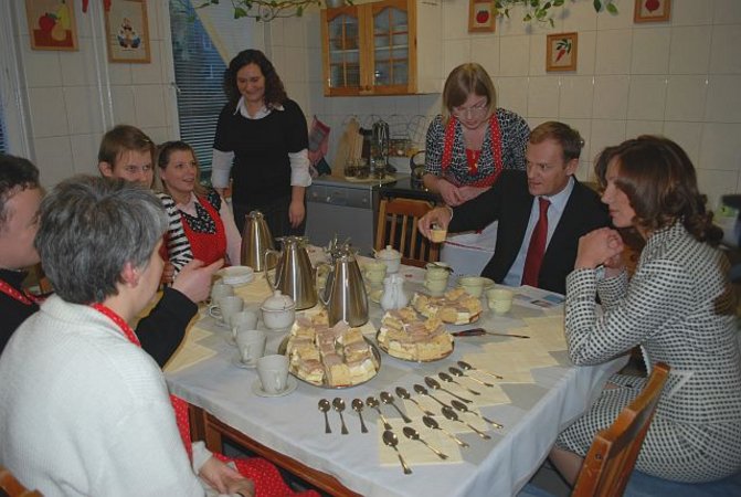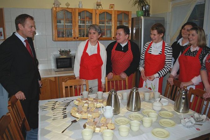 Jako ostatnią szef rządu odwiedził pracownię kulinarną, na środku której stał misternie nakryty stół i własnoręcznie upieczone ciasta. Premier wypił herbatę owocową i spróbował zachwalanego cytrynowca. - Żeby mnie tak w domu obsługiwano… – wzdychał.