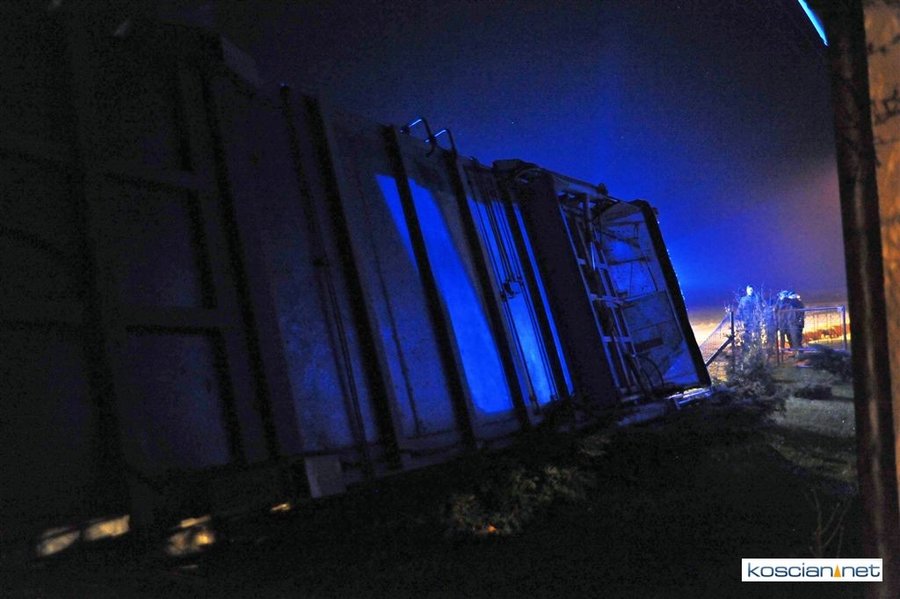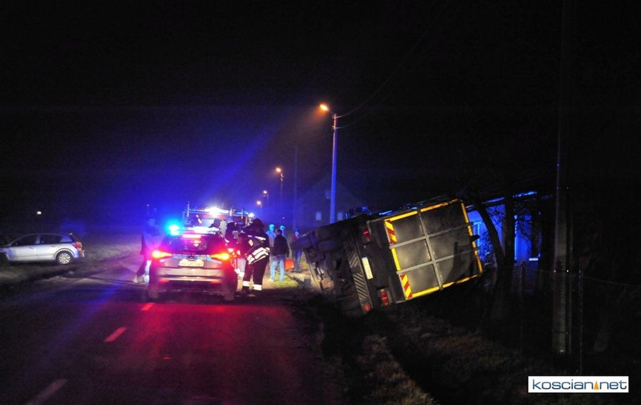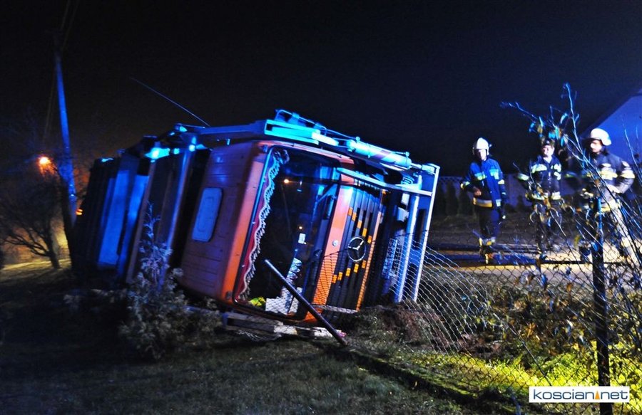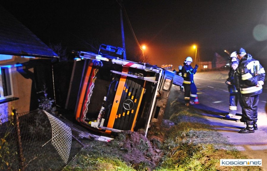 Do zdarzenia doszło wczoraj w Bielewie (gm. Krzywiń). O godzinie 19.36 kościańska straż pożarna otrzymała informację o dostawczym mercedesie, który wjechał do rowu przed jedną z posesji i zablokował drogę. Ze zgłoszenia wynikało, że pojazd przewoził trzodę chlewną. Do zdarzenia wysłano strażaków z Kościana, Krzywinia i Jerki. Na miejscu ratownicy stwierdzili, że kierowca wydostał się z auta samodzielnie i nie odniósł żadnych obrażeń. Samochodem nie przewożono żywej trzody, lecz odpady zwierzęce.