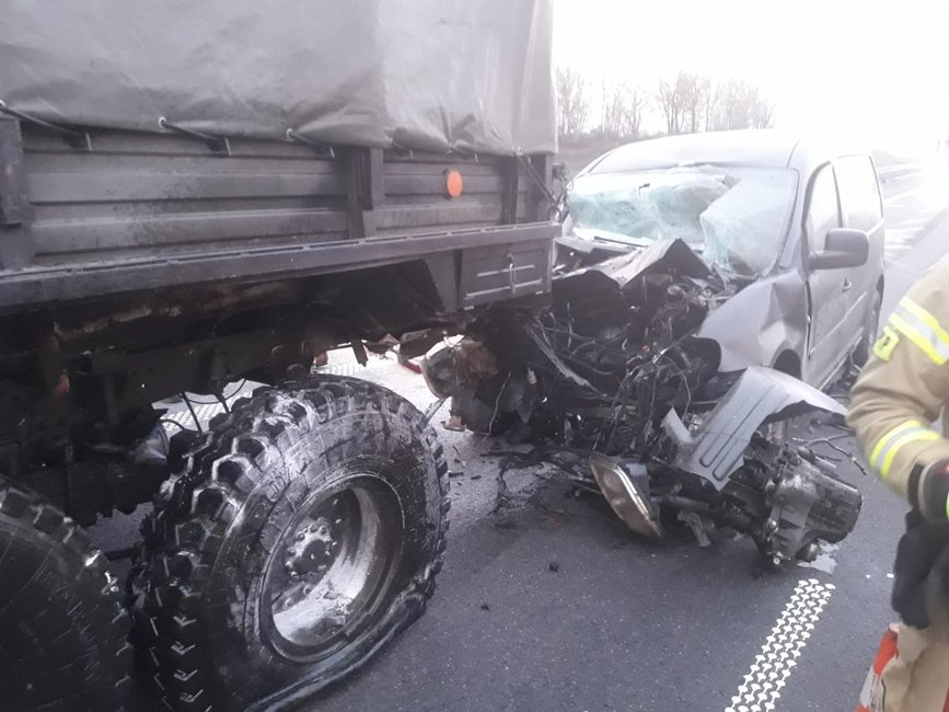 - Informację o wypadku otrzymaliśmy o godz. 5.31. Kierujący osobówką 56-latek wjechał w tył wojskowej ciężarówki, prowadzonej przez 36-letniego mężczyznę. Obaj kierowcy opuścili auta o własnych siłach, przed przybyciem służb ratowniczych. Strażacy udzielili pomocy poszkodowanym. Przybyły na miejsce Zespół Ratownictwa Medycznego zdecydował o przewiezieniu kierowcy samochodu osobowego na dalsze badania do kościańskiego szpitala – informuje Dawid Kryś, oficer prasowy KP PSP w Kościanie. - Po wykonaniu czynności dochodzeniowych przez policję, strażacy wspólnie z załogą pomocy drogowej usunęli wrak oraz oczyścili jezdnię z pozostałości powypadkowych.