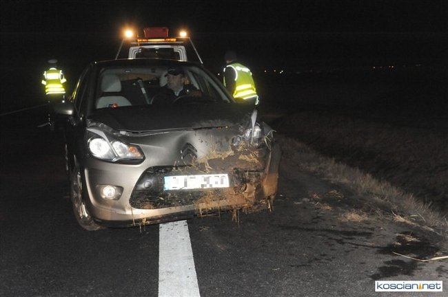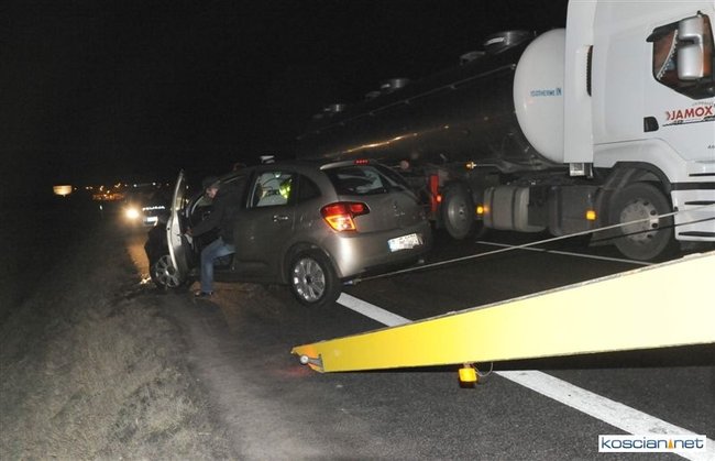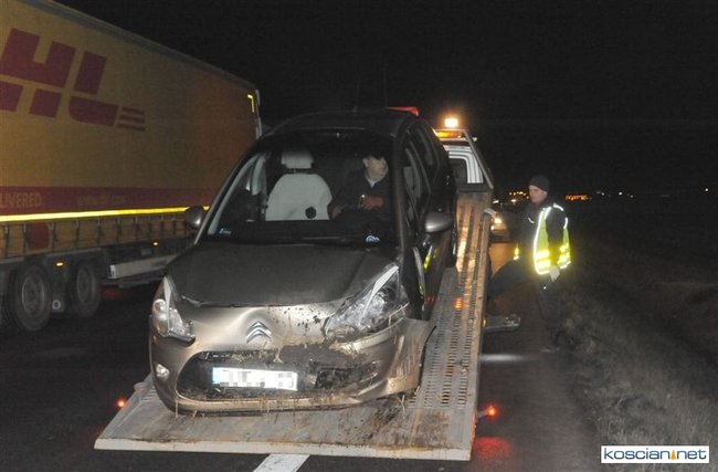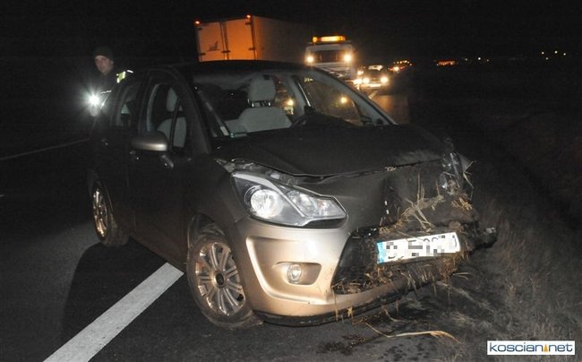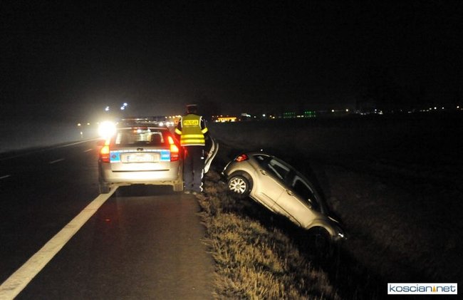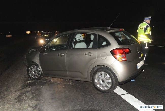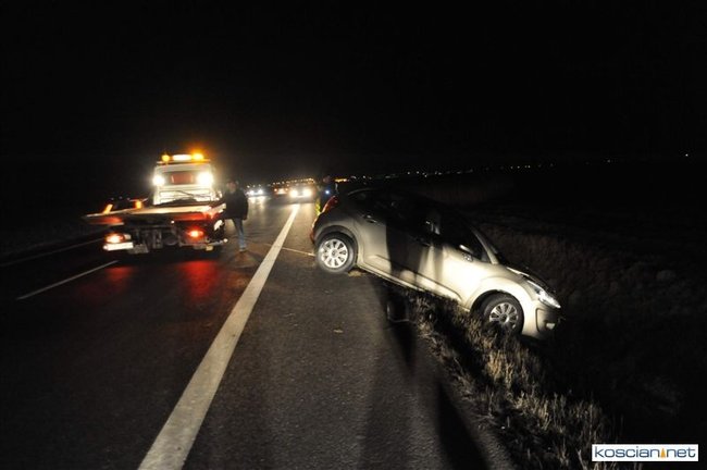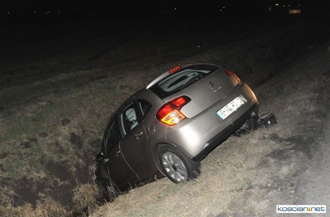 W piątek wieczorem, jadący obwodnicą Kościana citroen zjechał do przydrożnego rowu.