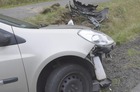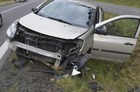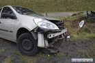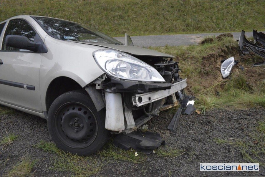 Kierująca renaultem na łuku drogi straciła panowanie nad samochodem. To druga dziś taka kolizja.