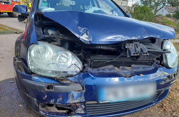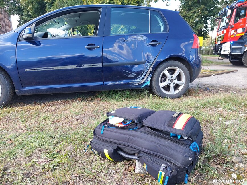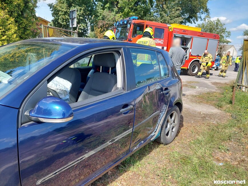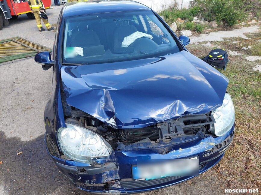 Volkswagen golf zjechał z drogi i uderzył w bramę posesji. Kierującą autem przewieziono do szpitala.