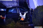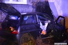 Samochód osobowy uderzył w dom mieszkalny. Dwie osoby trafiły do szpitala.