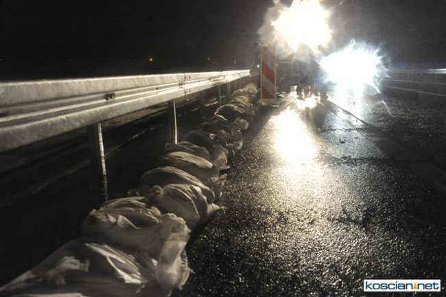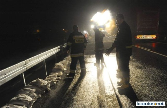 Straż pożarna przez 24 godziny zabezpieczała odcinek drogi krajowej nr 5 na wysokości zjazdu do Kościana od strony Leszna. Droga była podmywana przez wodę spływającą z pól.