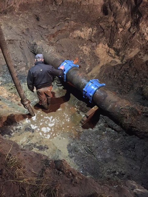 Prace rozpoczęto w maju, kiedy zauważono niewielkie różnice w dobowych zapasach wody w zbiornikach stacji uzdatniania wody na ulicy Jesionowej. Po opomiarowaniu rurociągu, którym dostarczana jest woda ze studni, stwierdzono, że odłożył się w nim osad żelazowo-manganowy. Oczyszczenie magistrali zlecono firmie Coatreno.