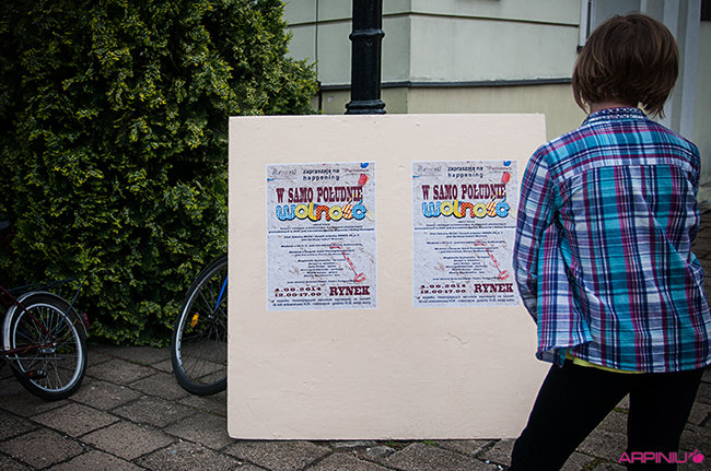 Blisko pięciogodzinny happening zatytułowany „w samo południe – wolność” był połączeniem muzyki, teatru i plastyki. Uczestniczyła w nim młodzież kościańskich szkół, muzycy współpracujący z KOK-iem i aktorzy Kościańskiego Teatru Kameralnego. Można było posłuchać muzyki klasycznej oraz utworów z lat osiemdziesiątych i dziewięćdziesiątych.
