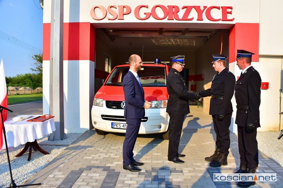 Uroczystość przekazania volkswagena transportera odbyła się w piątek, 7 sierpnia. Kluczyki do samochodu przekazał druhom z OSP Robert Natunewicz – Zastępca Wielkopolskiego Komendanta Wojewódzkiego Państwowej Straży Pożarnej. W uroczystości uczestniczyli także: Andrzej Ziegler – Komendant Powiatowy PSP w Kościanie, Starosta Kościański Henryk Bartoszewski, burmistrz Czempinia Konrad Malicki, – Prezes Zarządu Oddziału Powiatowego ZOSP RP w Kościanie Tomasz Grzelczyk, ks. Prałat Czesław Bartoszewski oraz mieszkańcy Gorzyc.