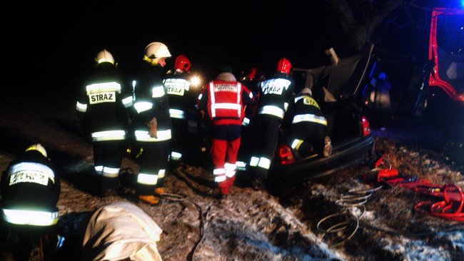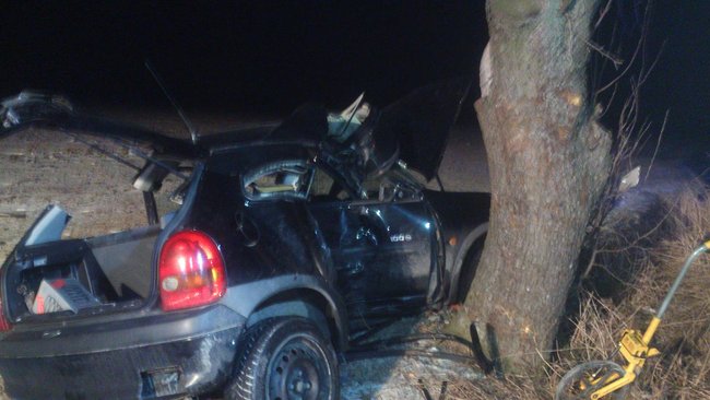 Na drodze z Piechanina do Srocka Wielkiego opel corsa uderzył w drzewo. Dwie osoby trafiły do szpitala.
