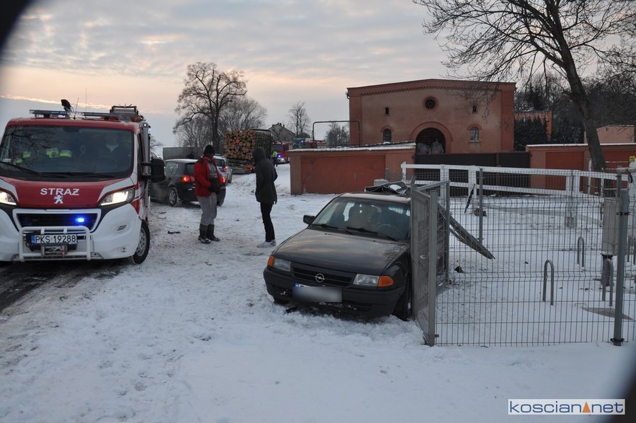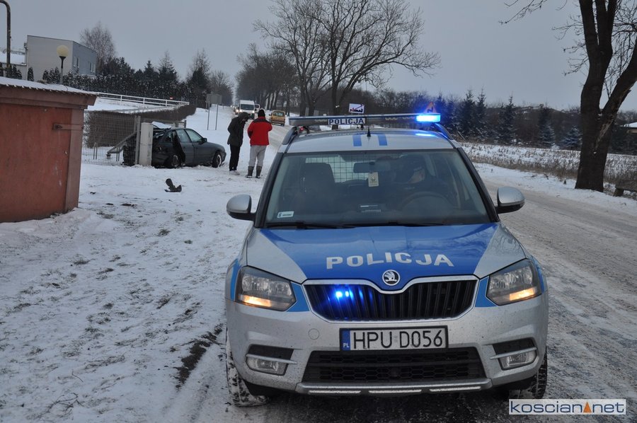 Do kolizji doszło we wtorek, 9 lutego, na drodze wojewódzkiej 311 w Piotrkowicach (gmina Czempiń). Osiemnastolatek kierujący oplem nie dostosował prędkości do warunków panujących na ośnieżonej drodze. Auto wpadło w poślizg, uderzyło w jadący z przeciwnego kierunku samochód ciężarowy po czym wjechało w ogrodzenie. Nikomu nic się nie stało. Nastolatka ukarano mandatem.