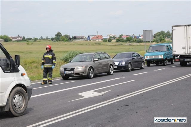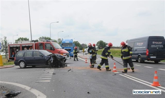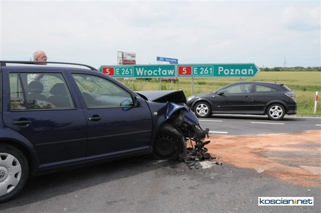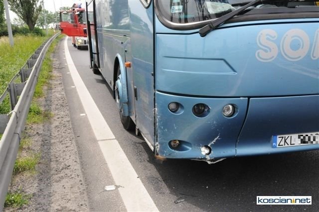 Do groźnie wyglądającej kolizji doszło w sobotę, 29 czerwca, przy wjeździe na drogę krajową nr 5 z ulicy Śmigielskiej w Kościanie. Kierowca volkswagena wjechał na obwodnicę wprost pod turystyczny autokar. Na szczęście nikt nie odniósł poważniejszych obrażeń.