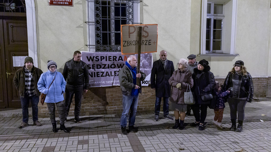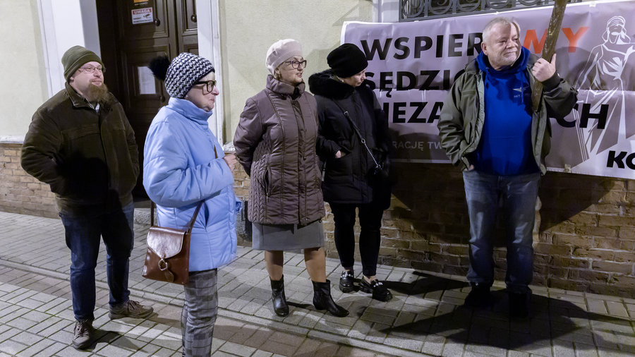 Grupa mieszkańców spotkała się przed kościańskim sądem, aby wesprzeć represjonowanych sędziów.