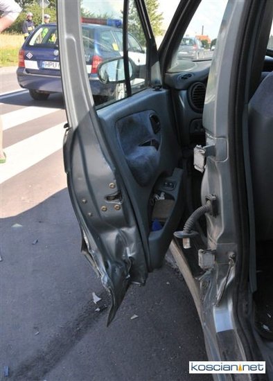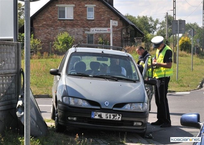 Kierowca volkswagena wyjeżdżając z drogi podporządkowanej uderzył w bok prawidłowo jadącego renaulta, którym podróżował ojciec z synem. Na szczęście skończyło się na stratach materialnych.