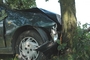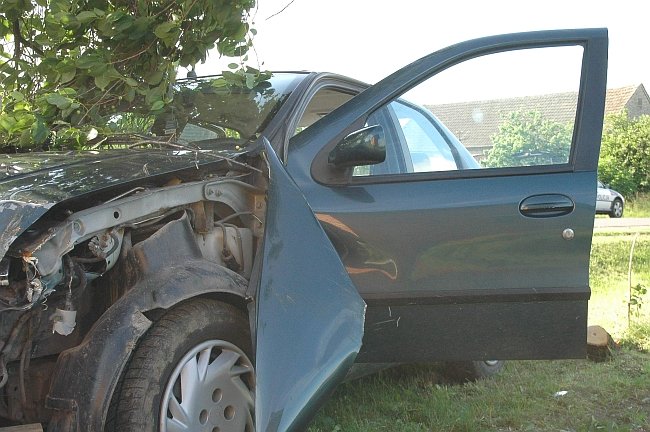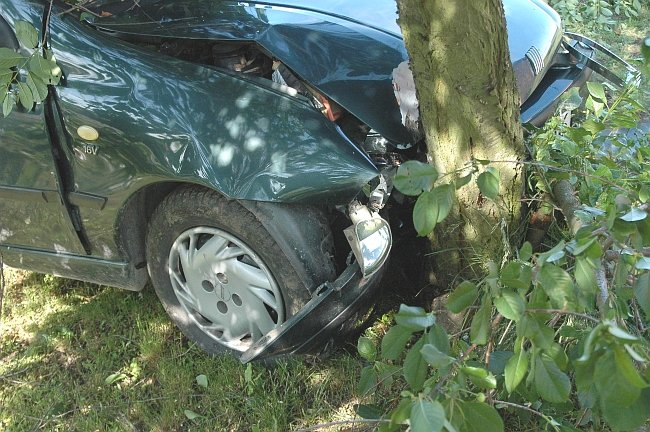 W piątek w Katarzyninie (gmina Kościan) kierujący fiatem sienną mężczyzna zjechał nagle na lewą stroną jezdni i uderzył w drzewo. Kierowcę odwieziono do szpitala. Fot. Bogdan Ludowicz