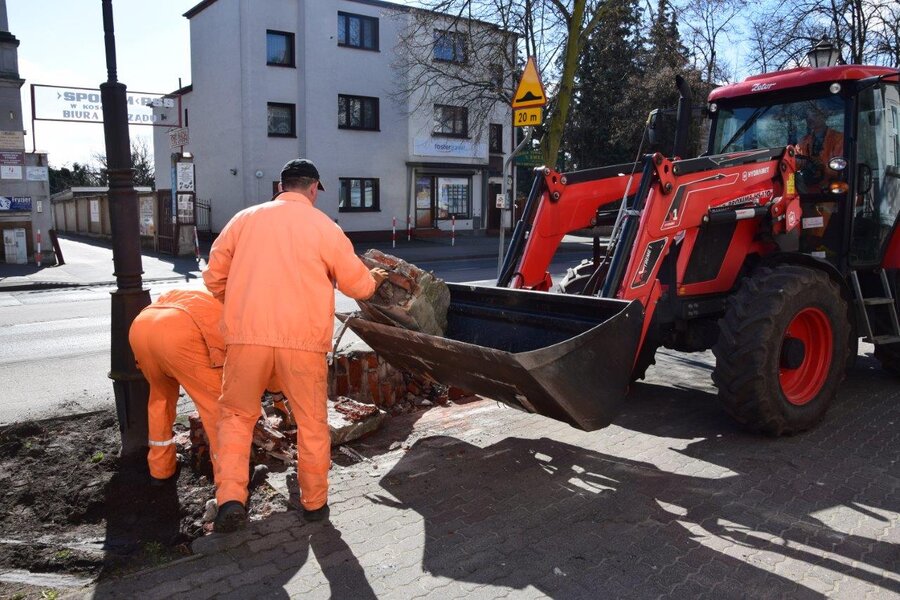 W środę, 5 kwietnia, pracownicy Zarządu Dróg Powiatowych wycięli rosnące przed urzędem rośliny, by przygotować teren pod nowe nasadzenia. Rozebrano także murki przed głównym wejściem do budynku.