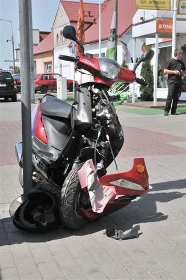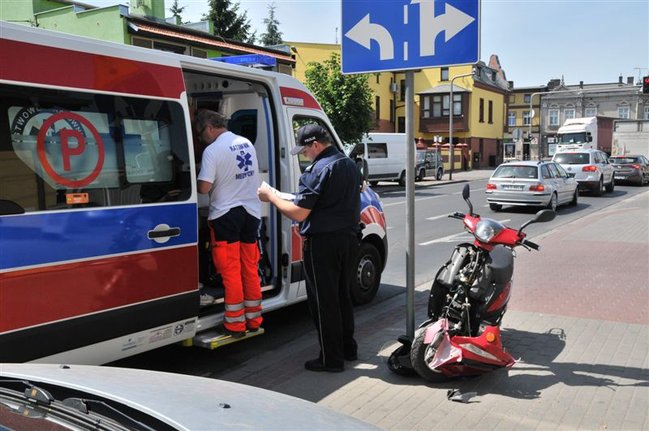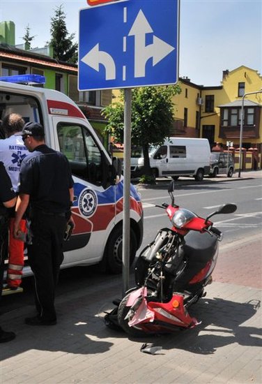 Kierowca audi nie udzielił pierwszeństwa przejazdu kierowcy skutera doprowadzając do kolizji.