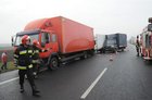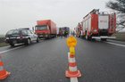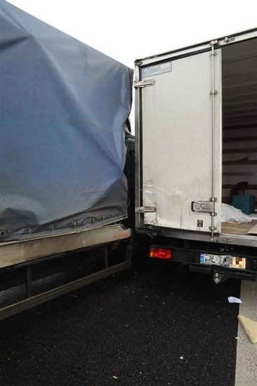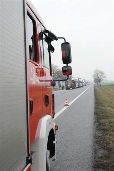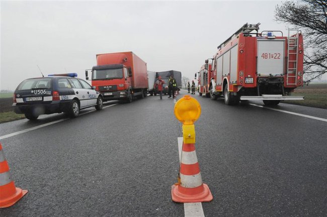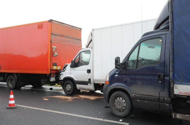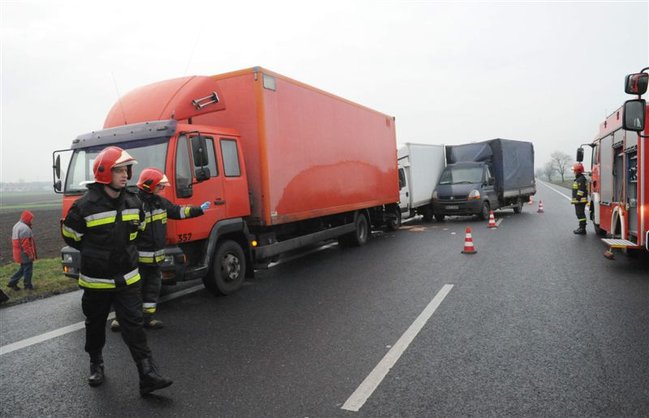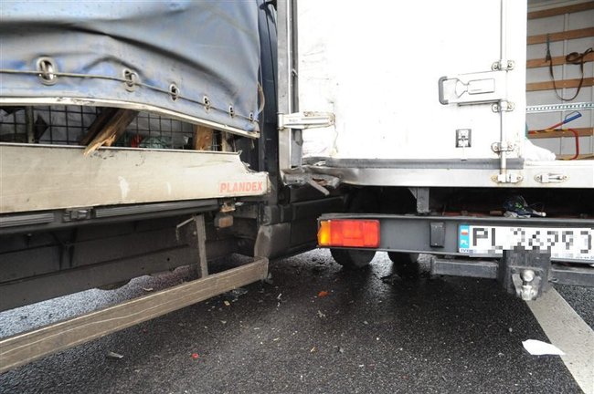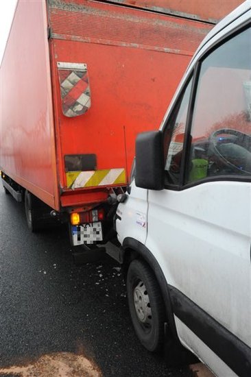 Dostawczy renault zjechał na pobocze uderzając w stojące tam samochody ciężarowe mann i iveco, które były połączone pasem do holowania. W momencie uderzenia pomiędzy autami znajdowały się dwie osoby – obie w stanie poważnym trafiły do szpitala.