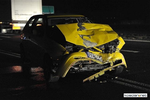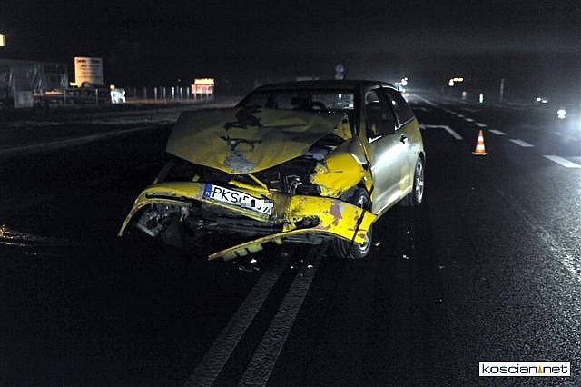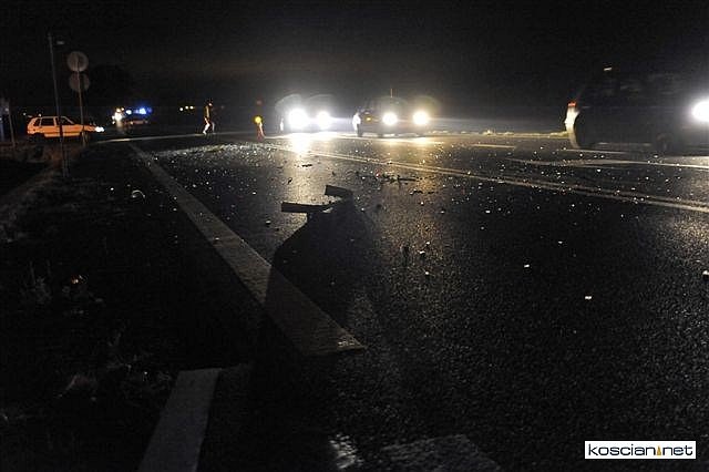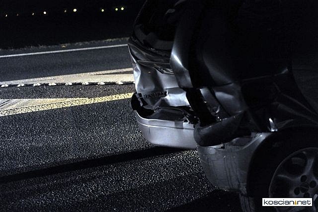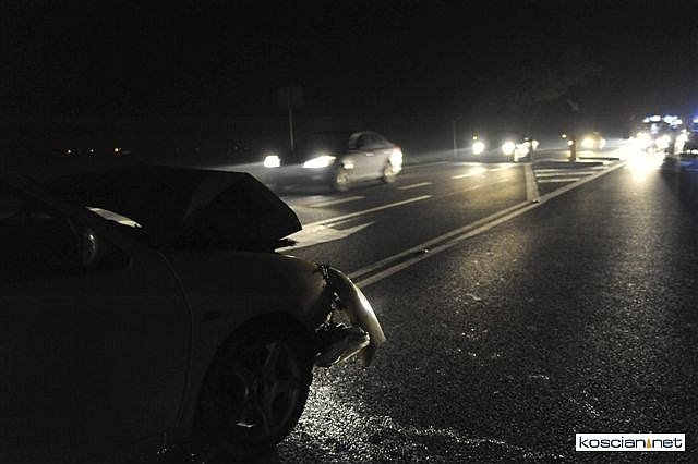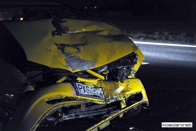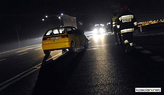 Jadący od strony Oborzysk renault scenic zderzył się z jadącym drogą krajową nr 5 seatem ibizą. Kierowca seata trafił do szpitala ze złamaniem rzepki stawu kolanowego