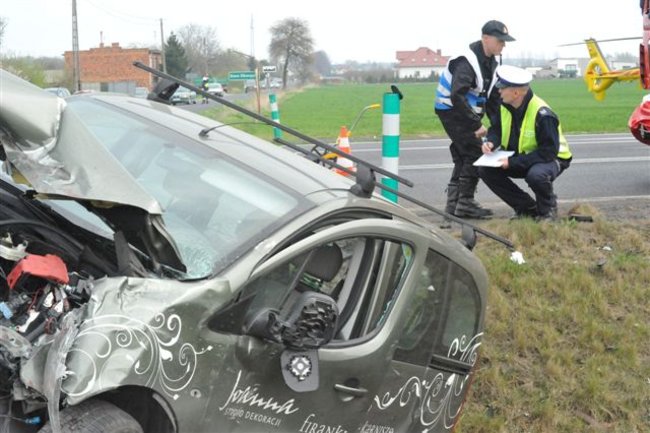 Do wypadku doszło około godziny 14. Jak wynika ze wstępnych ustaleń kobieta kierująca seatem toledo jadąc z Oborzysk w kierunku Kurowa nie udzieliła pierwszeństwa peaugeotowi partner jadącemu drogą krajową w kierunku Kościana. Kierującą seatem przetransportowano śmigłowcem Lotniczego Pogotowia Ratunkowego do szpitala w Puszczykowie. Na badania do kościańskiego szpitala trafił kierowca peugeota i dziecko, które podróżowało seatem. Uczestnicy wypadku są mieszkańcami gminy Kościan.