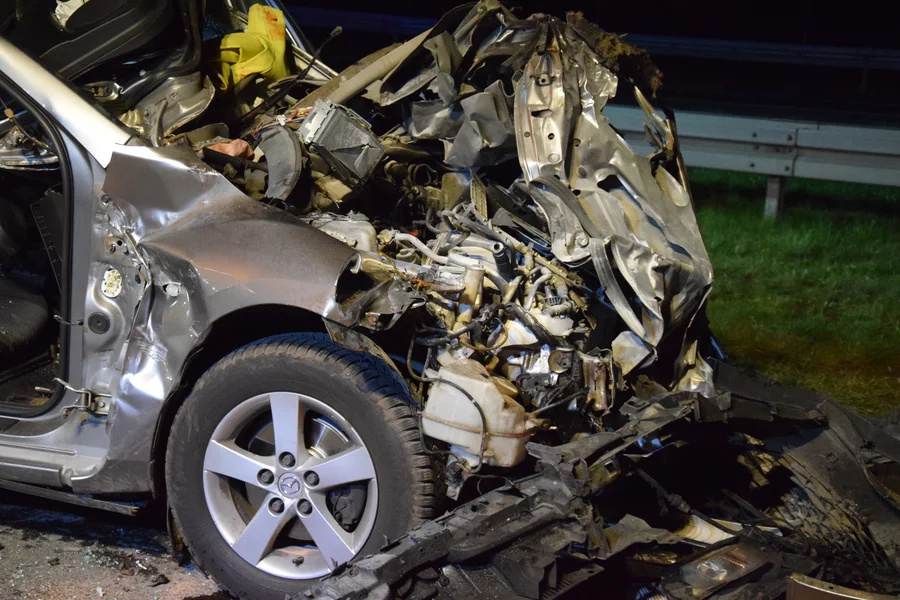 Utrudnienia w ruchu spowodowane tym zdarzeniem miały związek z wieczornym wypadkiem. Dojeżdżający do miejsca kolizji ciągnik siodłowy znacznie zwolnił, a w jego tył uderzyła osobowa mazda. Kierowcę i pasażerkę przewieziono do szpitala.