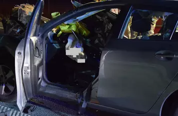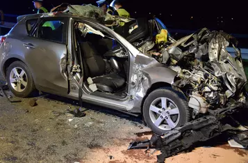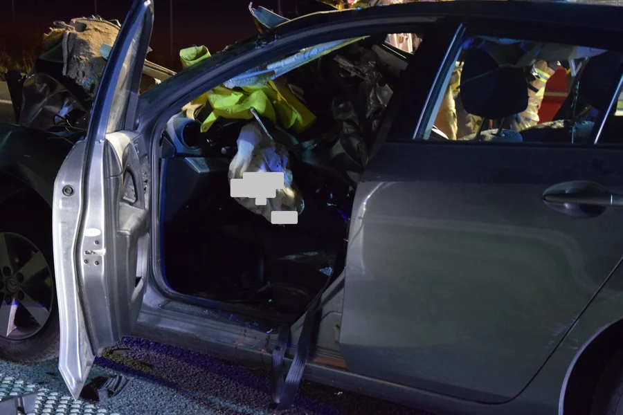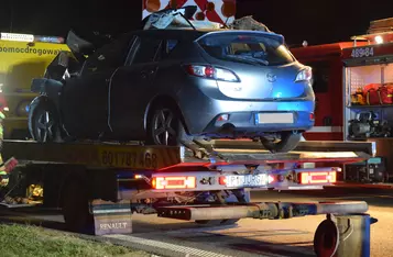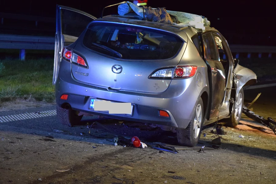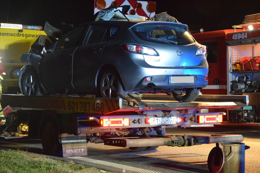 Osobowa mazda wbiła się w tył ciągnika siodłowego, który nagle zwolnił. Kierowca i pasażerka mazdy trafili do szpitala.