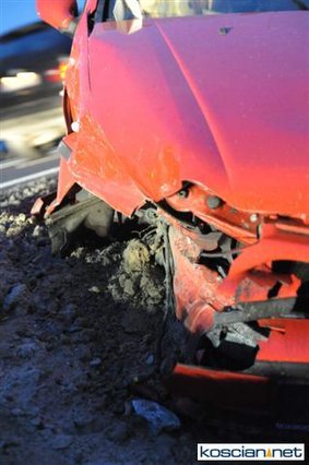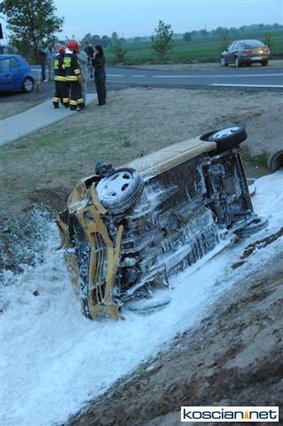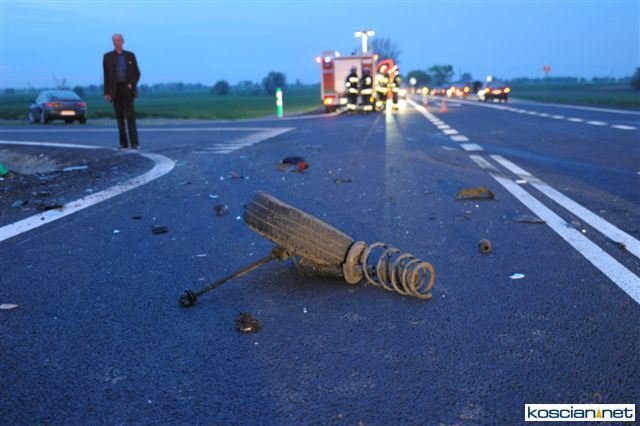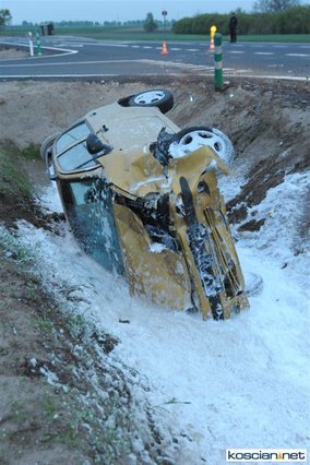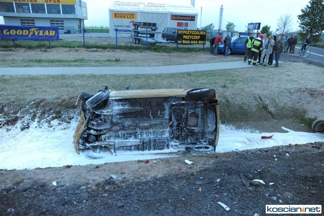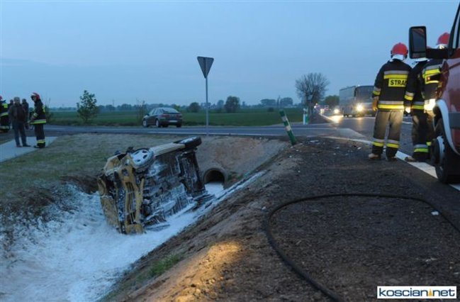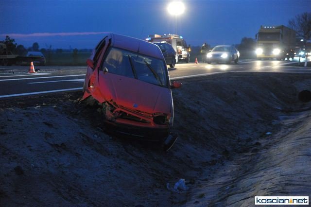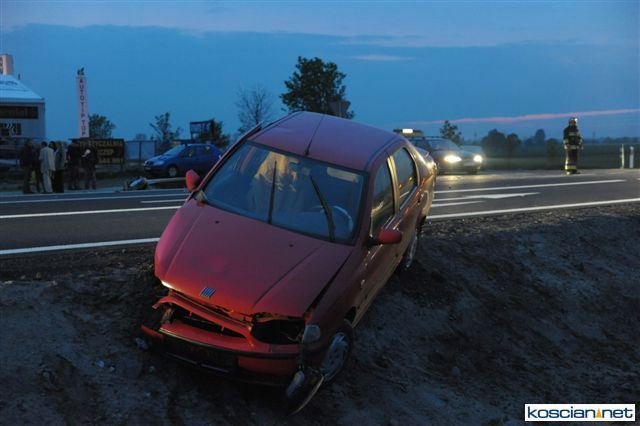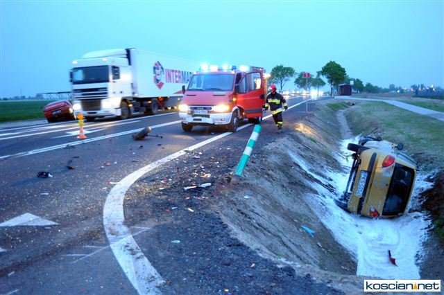- Daewoo wylądowało w przydrożnym rowie, a rozbity fiat zawisł na krawędzi jezdni po drugiej stronie drogi. Strażacy zabezpieczyli miejsce zdarzenia, zamykając ruch na drodze i udzielili kwalifikowanej pierwszej pomocy czterem poszkodowanym, którzy byli przytomni jednak uskarżali się na szereg dolegliwości – informuje Andrzej Ziegler, rzecznik prasowy kościańskiej straży, dodając, że zadbali też o rozłączenie akumulatorów w rozbitych pojazdach i zabezpieczyli rozlewisko paliwa za pomocą piany oraz oświetlono teren działań.