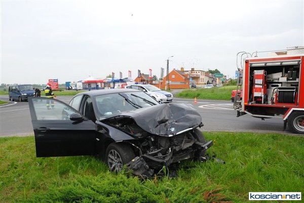 Dziś rano w Kościanie na skrzyżowaniu ul. Wielichowskiej z drogą krajową numer 5 doszło do wypadku. Kierowca nissana nie zauważył jadącego drogą główną bmw i zajechał mu drogę. Pogotowie zabrało do kościańskiego szpitala trzy poszkodowane osoby, w tym czteroletnie dziecko.