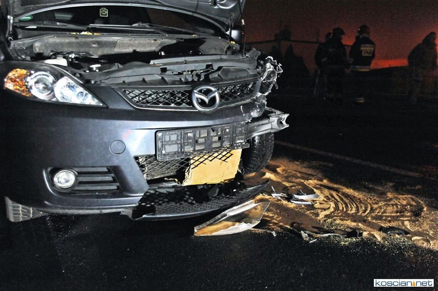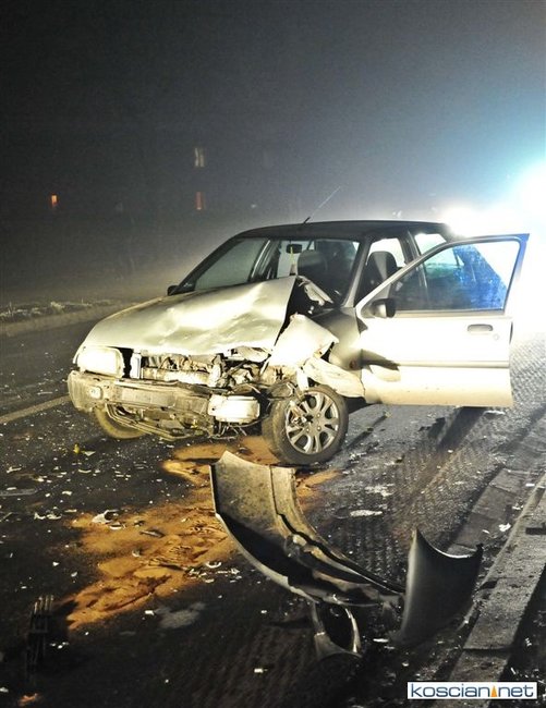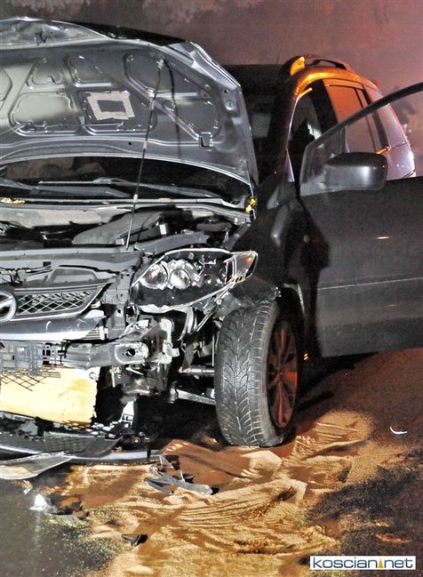 Do wypadku doszło w poniedziałek około godziny 19 na ulicy Kościańskiej w Racocie. Sekwencję zdarzeń, która doprowadziła do zderzenia dwóch samochodów rozpoczął 19-letni kierowca fiata seicento, który włączając się tyłem do ruchu nie udzielił pierwszeństwa jadącemu od strony Choryni fordowi fiesta. 21-letni kierowca forda chcąc uniknąć zderzenia z fiatem zjechał na przeciwny pas ruchu wprost pod mazdę prowadzoną przez 52-letnią kobietę. Kierowców aut biorących udział w zderzeniu przewieziono do szpitala. Nastolatkowi zatrzymano prawo jazdy.