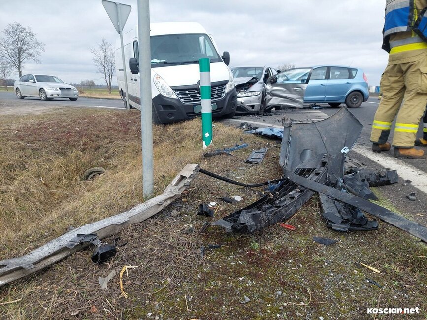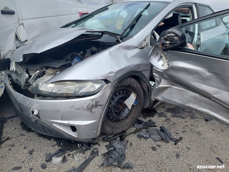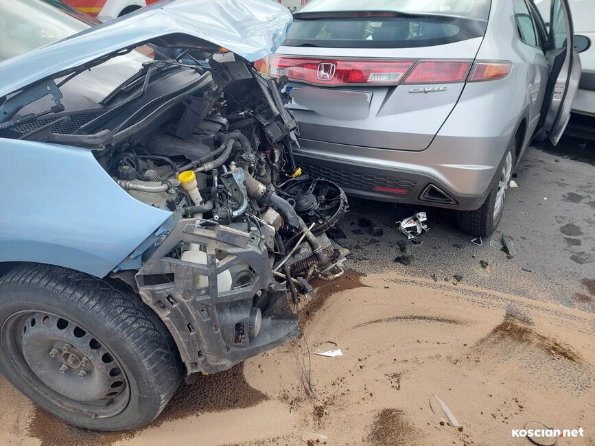 Jak wynika ze wstępnych ustaleń, kierujący renaultem wyjeżdżając na drogę wojewódzką od strony Starych Oborzysk, nie ustąpił pierwszeństwa przejazdu jadącej od strony Poznania hondzie. Po zderzeniu honda przemieściła się i uderzyła w busa stojącego na drodze do Kurowa. Kierującą hondą z poważnymi obrażeniami przewieziono do szpitala.