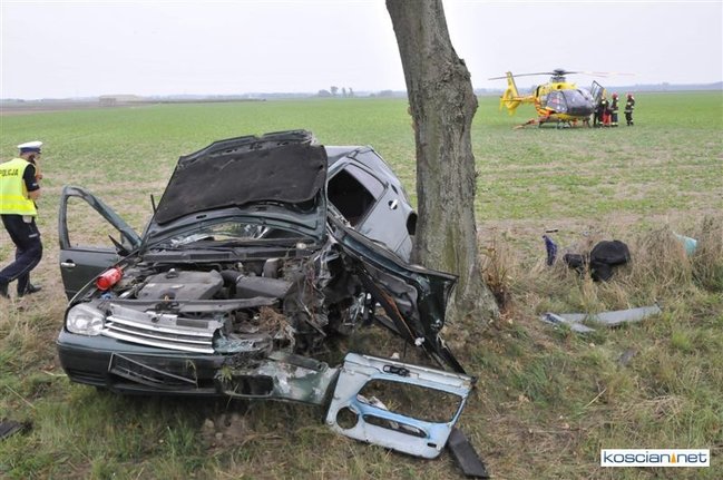 Ciężko poszkodowani kierowca golfa i jadąca z nim 25-letnia pasażerka zostali przetransportowani do szpitala śmigłowcem Lotniczego Pogotowia Ratunkowego. Inni uczestnicy wypadu nie odnieśli poważnych obrażeń.