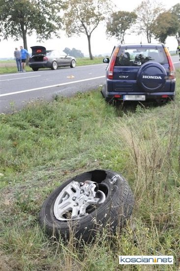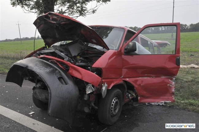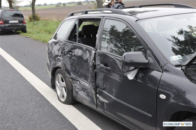 Do wypadku doszło wczoraj około godziny 15.40 na drodze krajowej nr 5 pomiędzy Czaczem i Poninem. Kierowca volksvagena golfa wyprzedzając „na trzeciego” ciąg samochodów zmusił inne pojazdy do ucieczki na pobocze w wyniku czego volkswagen t4 dachował, honda crv wpadła do rowu oraz uszkodzone zostały renault scenic i mazda. Golf zatrzymał się uderzając w przydrożne drzewo.