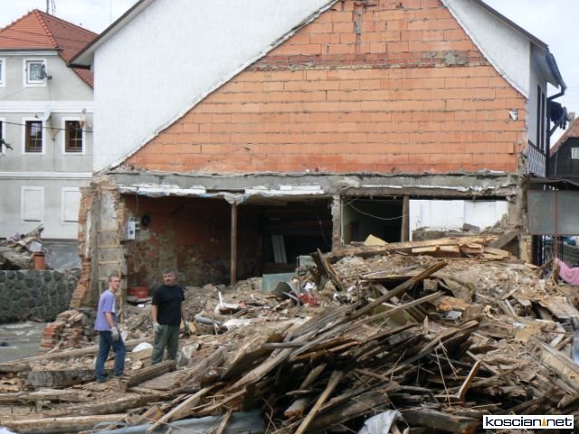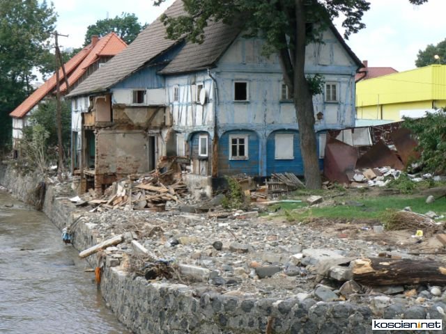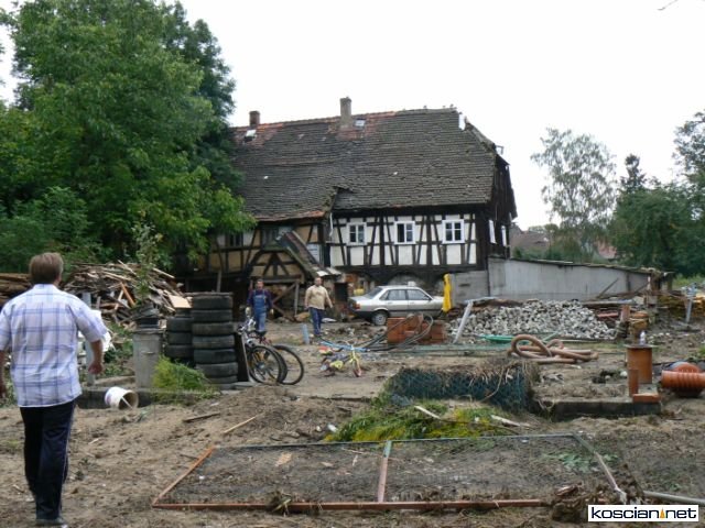Po rozładowaniu darów trójka motocyklistów ruszyła w miasto. Jeszcze przed wyjazdem zapowiedzieli, że pomogą jakiejś rodzinie w wyremontowaniu domu. Z mieszkańcami trudno było rozmawiać. Często byli załamani po stracie dorobku życia. Dotarli do części Bogatyni, która ucierpiała najbardziej. Pytali policjantów i strażaków. Ci jednak w większości byli spoza miasta. Zaczęli szukać na własną rękę. Jeden z napotkanych mężczyzn przyznał, że jego dom popłynął. Stwierdził, że niczego nie potrzebuje, ale wskazał na rodzinę, która ma jeszcze dom. Dom okazał się zabytkiem liczącym 350 lat. Kościaniacy obawiali się, że nie podołają remontowi takiego obiektu. Jego właściciel zaprowadził ich do swoich sąsiadów.