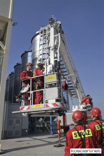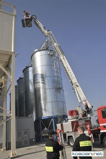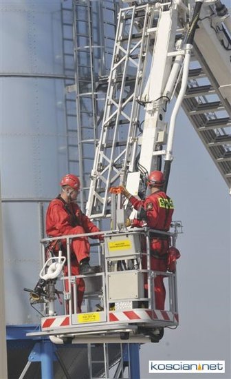 W Bruszczewie na terenie mieszalni pasz firmy MICHEL odbyły się strażackie ćwiczenia ratownictwa wysokościowego.