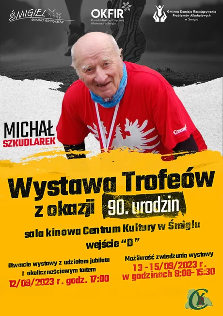 Wystawa pucharów, statuetek, medali, dyplomów i pamiątek z biegów, była naszym prezentem urodzinowym z okazji jego 90 urodzin. Zdradził bowiem, że było to jego marzenie. Drugim jego marzeniem był lot helikopterem. To wspólnymi siłami również udało nam się załatwić. Wystawę zorganizowaliśmy wspólnie z OKFiR Śmigiel, Centrum Kultury w Śmiglu oraz rodziną pana Michała. – relacjonuje Małgorzata Adamczak, burmistrz Śmigla.