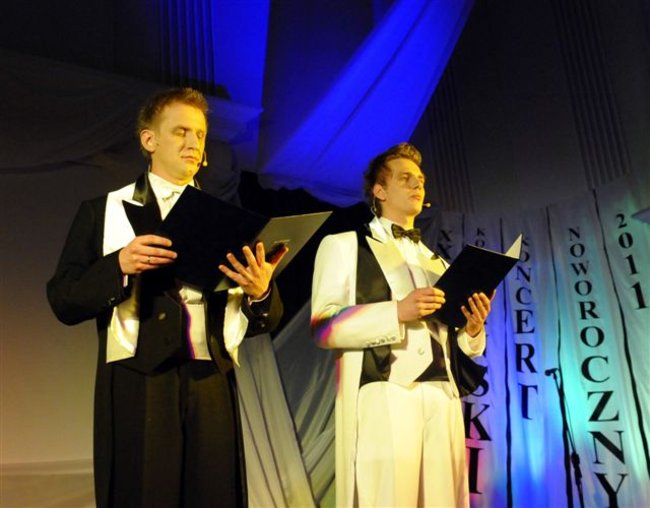 Jubileusze skłaniają do wspomnieć. W sentymentalną podróż publiczność zabrali prowadzący XXV Kościański Koncert Noworoczny aktorzy Teatru 112 Arkadiusz Wesołek i Krzysztof Bajsztok. Przypomnieli, kto w kolejnych latach występował na scenie w auli kościańskiego I Liceum Ogólnokształcącego. W przeszłość publiczności przeniosła się oglądając archiwalne zdjęcia.