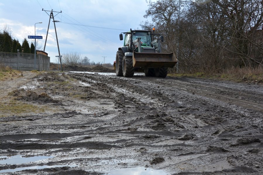Mieszkańcy nieutwardzonego odcinka ulicy Łąkowej i przyległych do nich ulic Cisowej, Cedrowej i Jesionowe załamują ręce. Wiosenne roztopy i ruch ciężkiego sprzęt powodują, że trudno im się wydostać z posesji. Na gruntowych drogach zalega błoto. Piesi suchą nogą nie mogą wydostać się z osiedla. Kierowcy obawiają się, że utkną w błotnych koleinach.