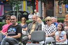 Przy fontannie na Pl. Wolności w Kościanie zagrały: skrzypaczka Aleksandra Rytwińska i pianistka Agnieszka Skorupa.