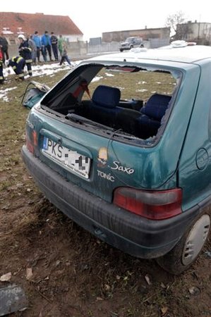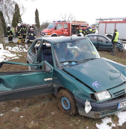 Wtorek, 16 marca 2010, skrzyżowanie dróg prowadzących do Jerki, Śremu, Zbęch i Łuszkowa. Citroen saxo wyjechał z drogi podporządkowanej wprost pod jadącego główną drogą lanosa. Aby wydobyć pasażerów z citroena konieczne było cięcie karoserii. Czworo uczestników wypadku odwieziono do szpitala w Kościanie.