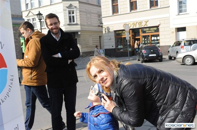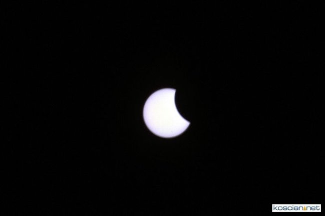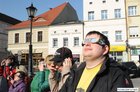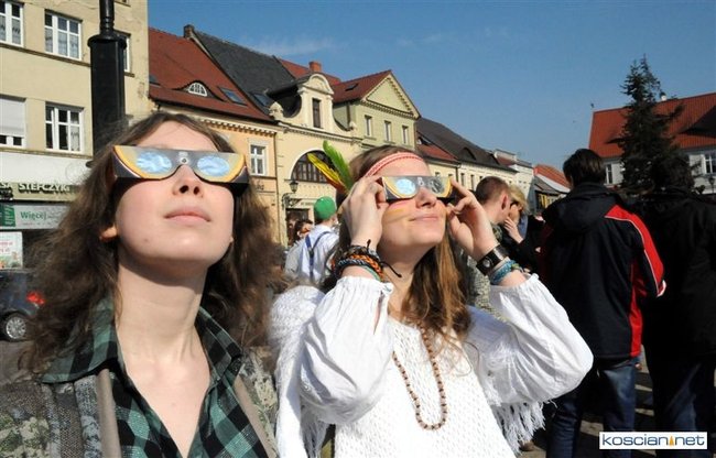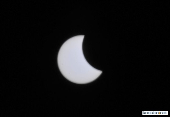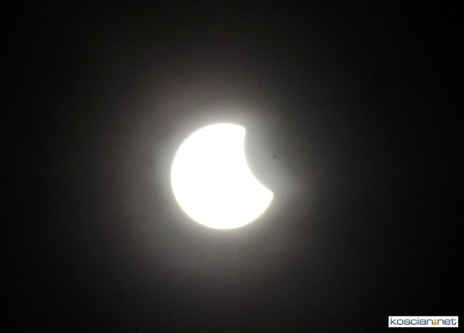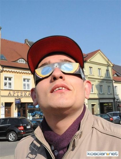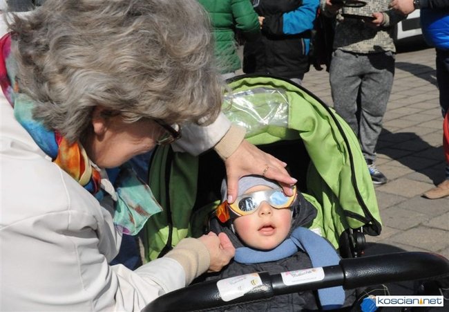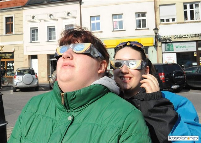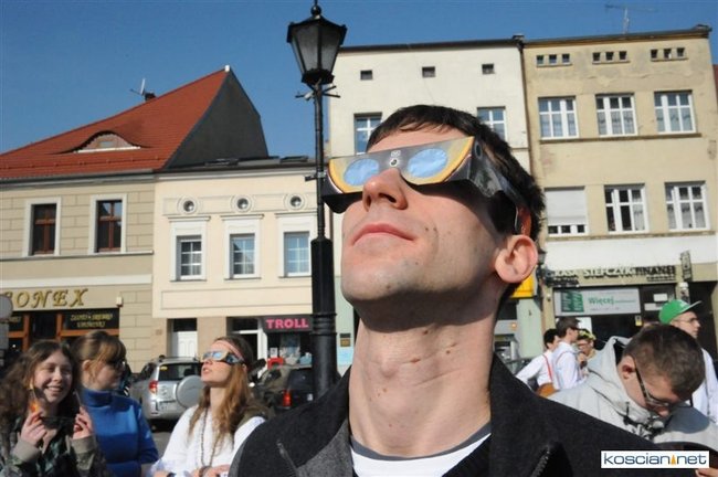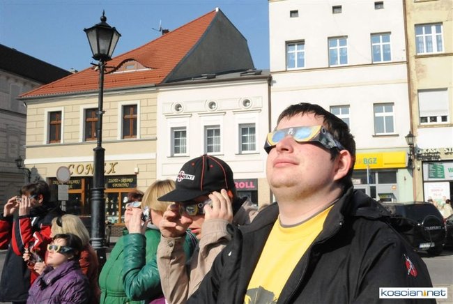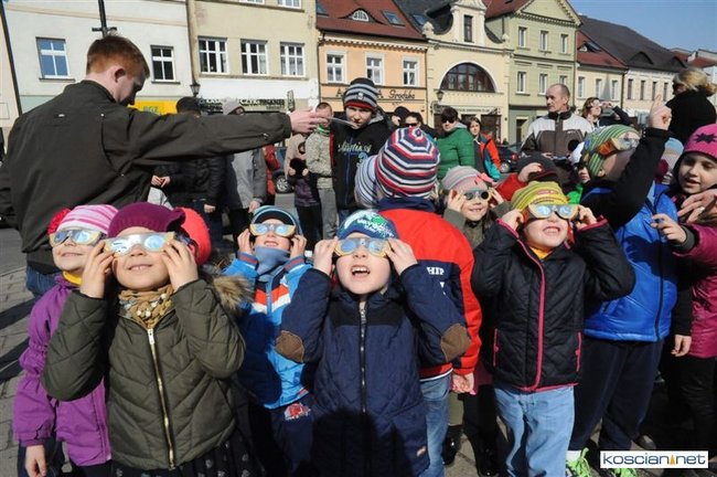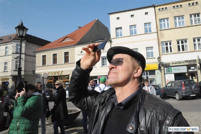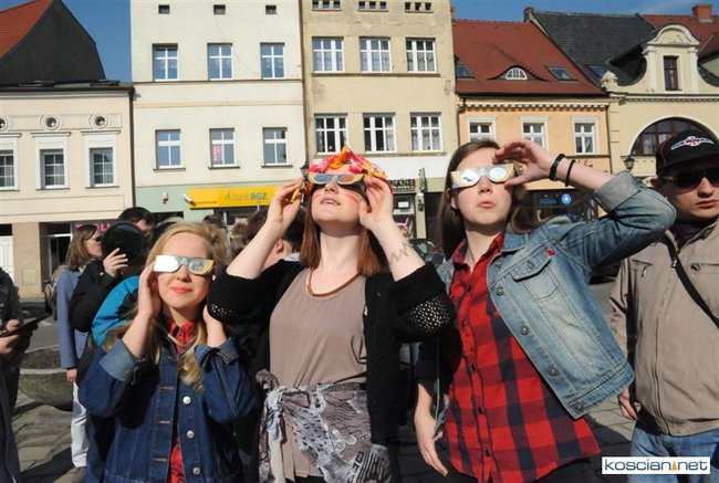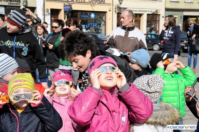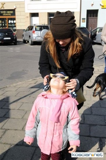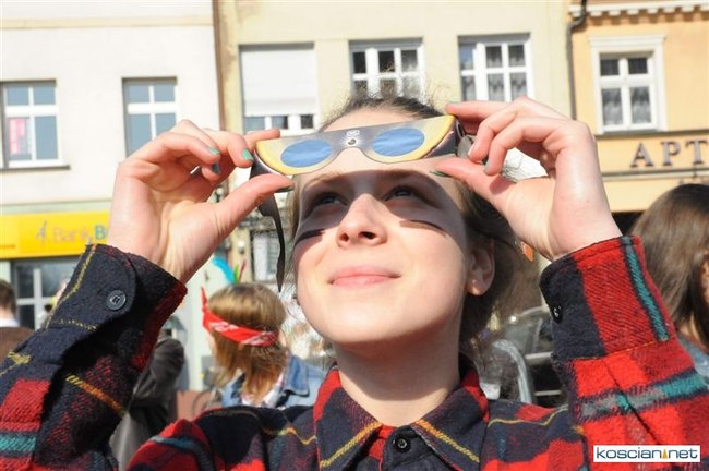 Obserwatorium astronomiczne z Wieży Ciśnień ułatwiało dziś kościaniankom obserwowanie zaćmienia Słońca udostępniając na Rynku specjalne okulary i szybki.