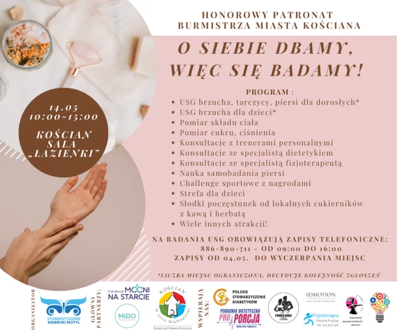 Na badania USG obowiązują zapisy telefoniczne: 886 890 711 (od 9:00 -16:00). Zapisy od 04.05 do wyczerpania miejsc.
