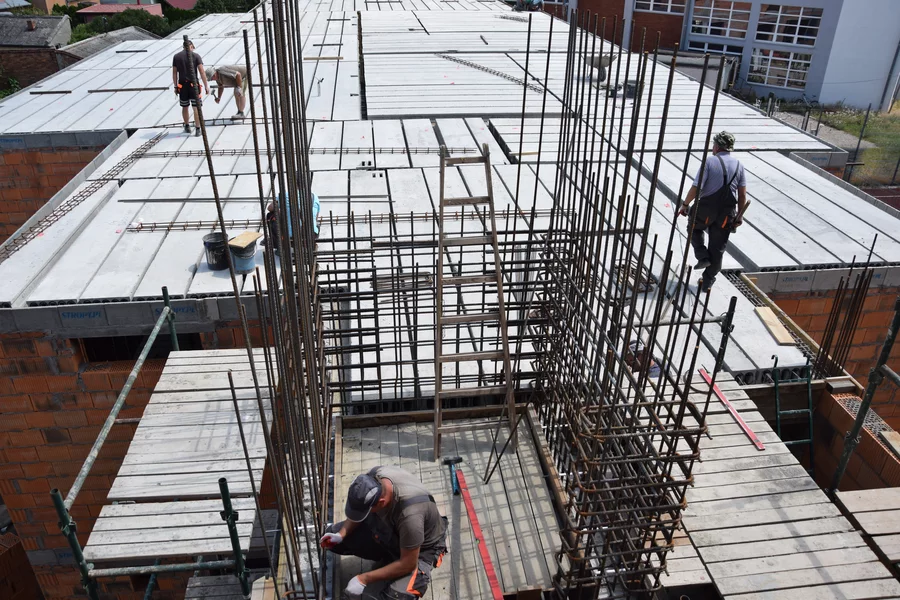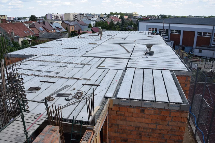 Zakończono układanie stropu nad pierwszym piętrem budynku. Kontunuowanie są prace przy budowie szybu widny. Budynek CKP będzie miał dwie kondygnacje, których łączna powierzchnia użytkowa wyniesie 1100 m2. Obiekt zostanie połączony ze szkołą na poziomie pierwszego piętra.