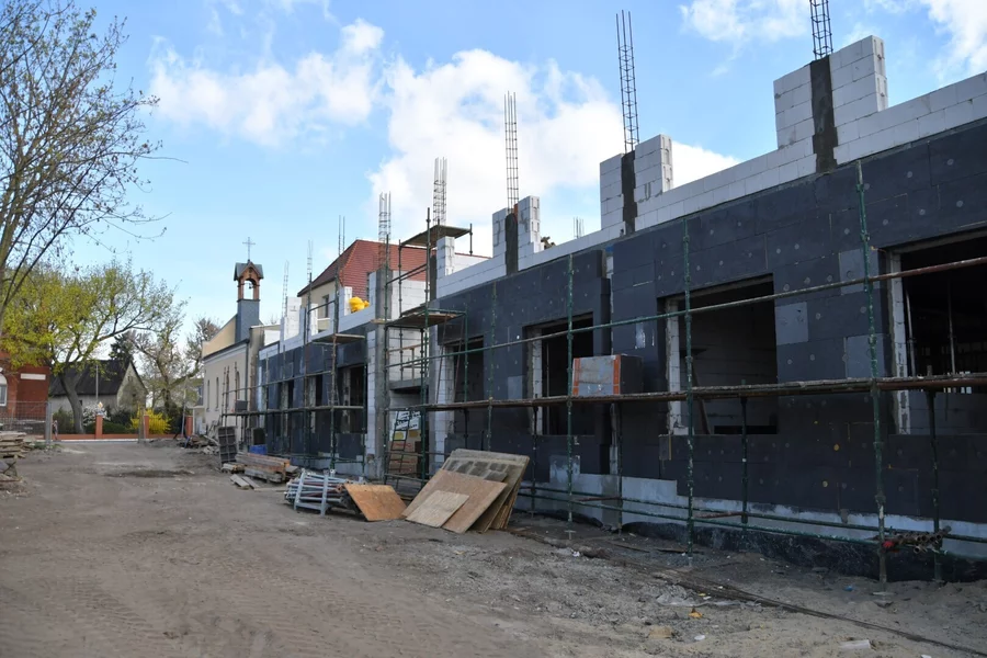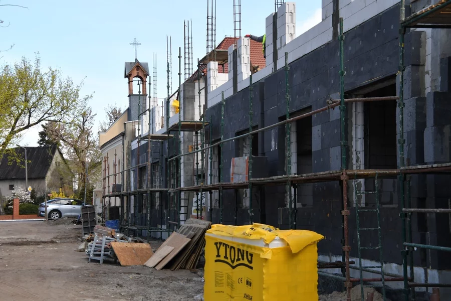 Prace na budowie realizowanej przez Przedsiębiorstwo Budowlane Budomont Sp. z o. o. z Kościana przebiegają zgodnie z harmonogramem. Po zakończeniu inwestycji, które jest planowane na koniec marca 2026 roku budynek będzie miał 12 pokoi dwuosobowych oraz 3 pokoje jednoosobowe, łącznie 27 miejsc. Na każde dwa sąsiadujące pokoje przypadać będzie jedna łazienka.